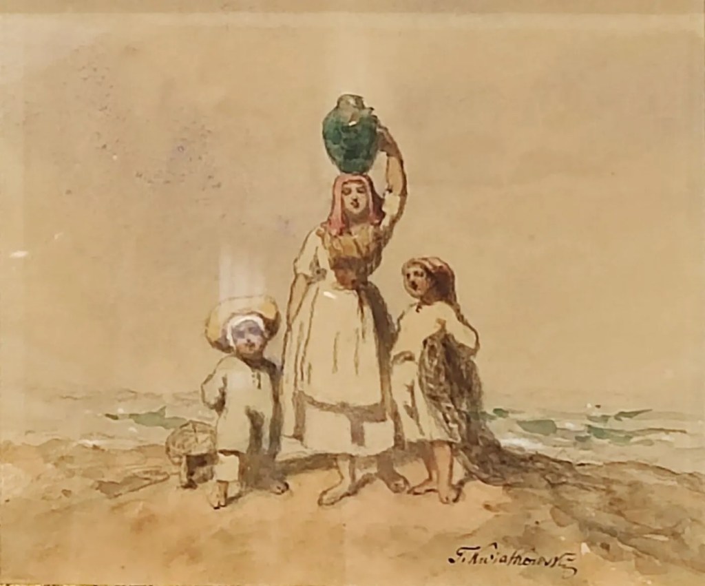 Lot 51. Theophil KWIATKOWSKI (1809-1891). “Porteuse d’eau et deux enfants“, aquarelle signée en bas à droite. 16.5 x 20cm à vue. Estimation: 250 € – 350 €. LAVOISSIERE-GUEILHERS, 09/18/25. Sold €270
