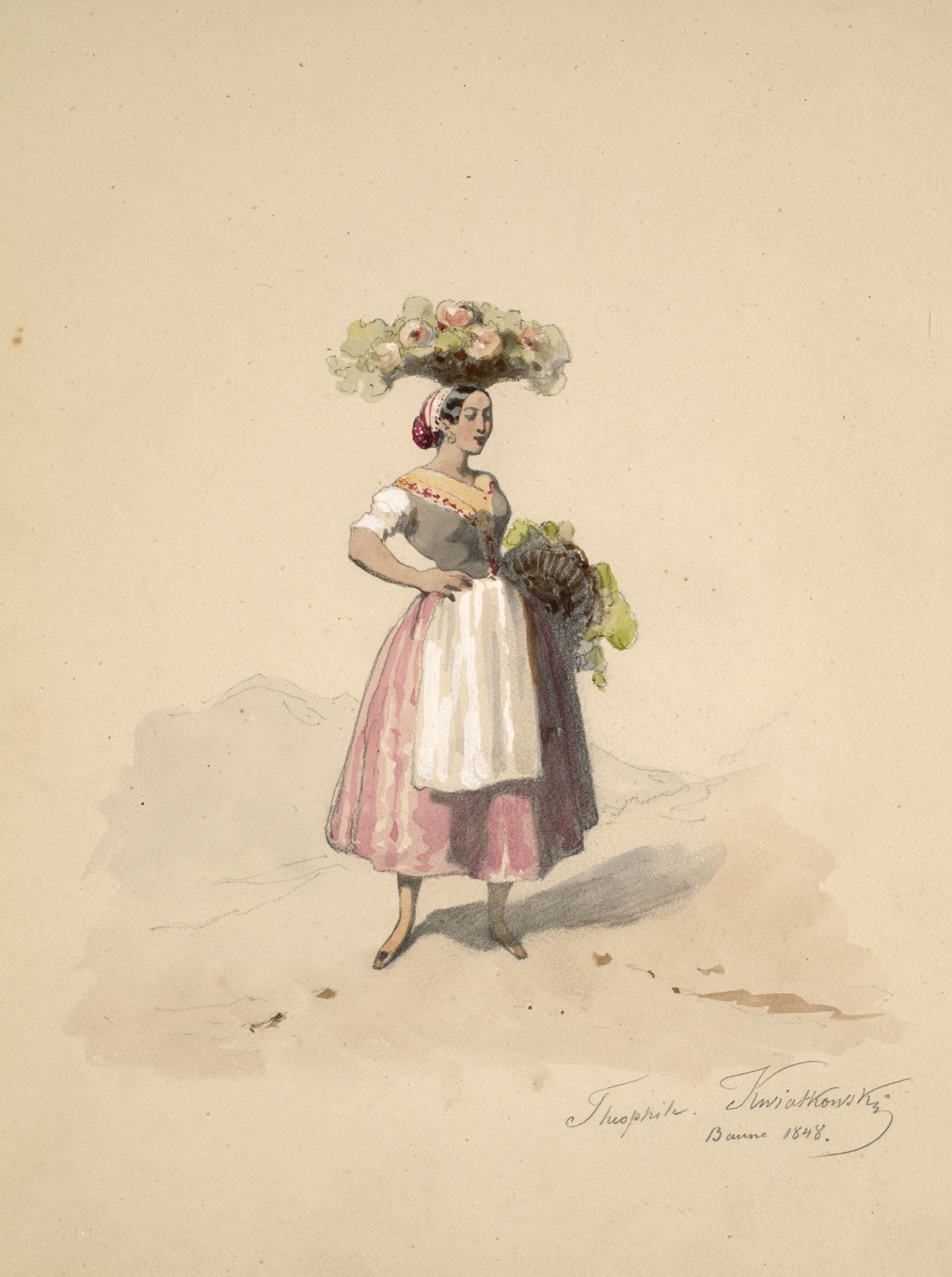 Lot 51. Theophil KWIATKOWSKI (1809-1891). “Porteuse d’eau et deux enfants“, aquarelle signée en bas à droite. 16.5 x 20cm à vue. Estimation: 250 € – 350 €. LAVOISSIERE-GUEILHERS, 09/18/25. Sold €270