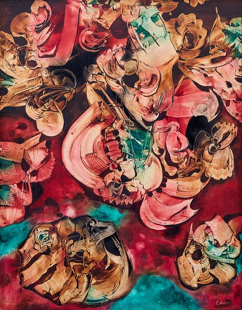 Lot 677. Alfred Lenica (Poland 1899‑1977). ”Siła w czerwieni”. Signed Lenica and signed and dated A. Lenica 1969 Warszawa on reverse. Oil on canvas, 146 x 114 cm. Estimate 150.000 – 200.000 SEK (€ 14.000 – 19.000). Uppsala. 12/11/19