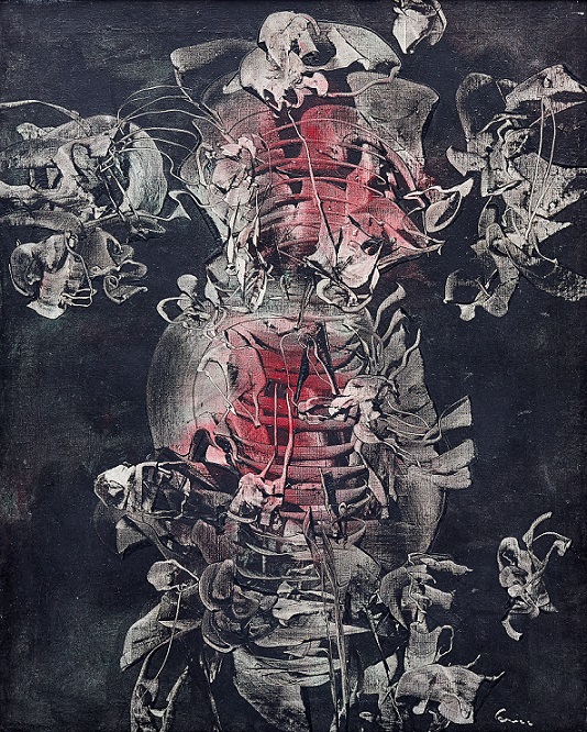 Lot 679. Alfred Lenica (Poland 1899‑1977). ”Arytmiczny Argus”. Signed Lenica and signed and dated A. Lenica Warszawa 1962. Oil on canvas, 95 x 76 cm. Estimate 50.000 – 70.000 SEK (€ 4.600 – 6.500). Uppsala. 12/11/19