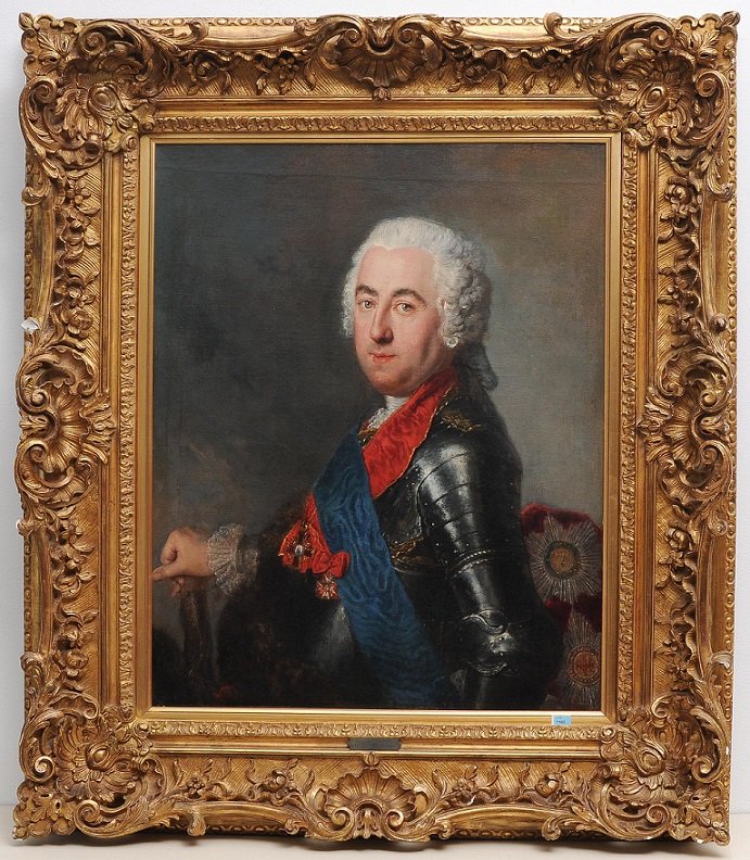 Lot 7102. Wohl Portrait von Adolf Friedrich, König von Schweden. Öl auf Leinwand. Verso auf Etikett bezeichnet “Antoine Pesne / Paris 1683 – 1757 Berlin / Stanislaus Leszczynski / König von Polen”. 8 3x 67 cm. – Transparentdoubliert. 03/20/23. Schuler. Estimate CHF 800 – 1,200. Sold CHF 6,000