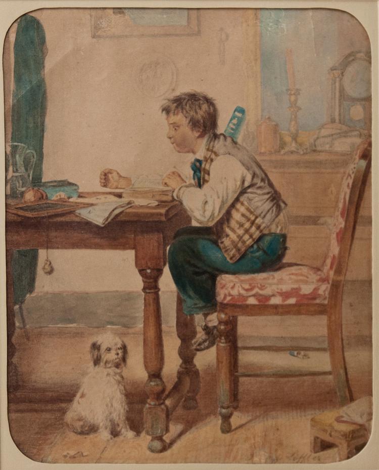 Lot 42. LEOPOLD LOFFLER-RADYMNO (AUSTRIAN, 1827-1898). School Scene. Oil on canvas. Signed lower left. From a West Side, NYC estate. – Dimensions: 16″ h x 13″ w. Estimate $1,000 – $1,500. Clarke Auction Gallery. 01/22/23. Sold $3,400
