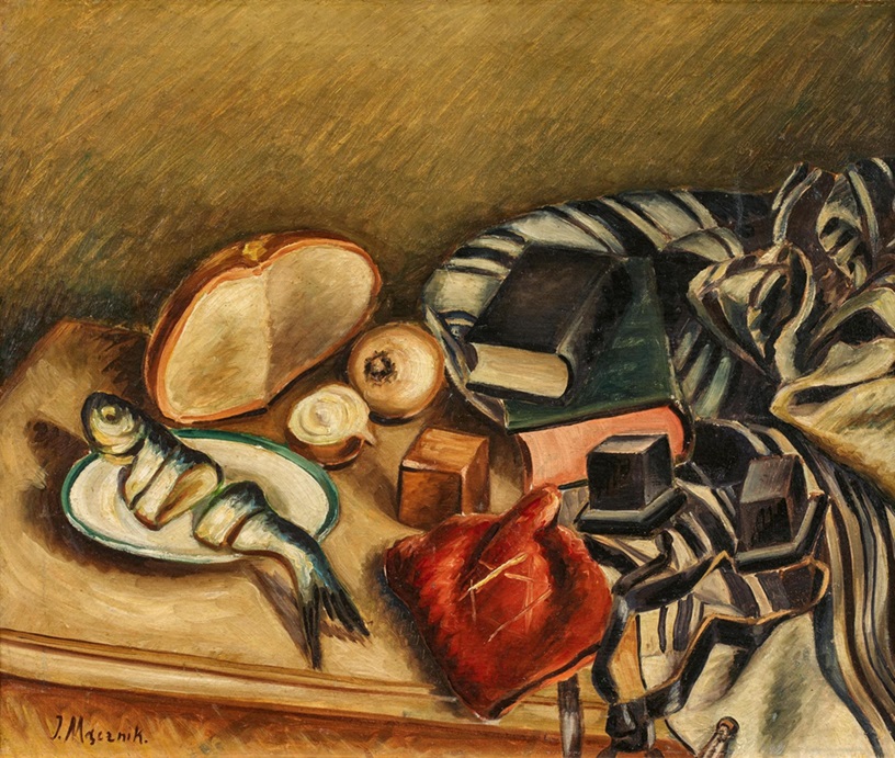 Lot 220. MACZNIK, JACOB 1905 Lodz – 1945 Ebensee. Still Life. Oil on canvas. Signed lower left: J. Macznik. Craftman’s frame. The work has been confirmed by Mr Samson Munn, Lincoln MA/USA, on the basis of a digital image. Provenance: Private collection North Rhine-Westphalia. Estimate 8,000 – 12,000 euro. Van Ham. 06/06/24. Sold 20,000 euro