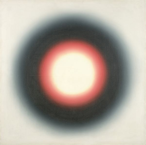 Öl auf Leinwand. 100 × 100 cm ( 39 ⅜ × 39 ⅜ in.). Rückseitig mit Pinsel in Schwarz signiert, betitelt und datiert: FANGOR B 1 1964.