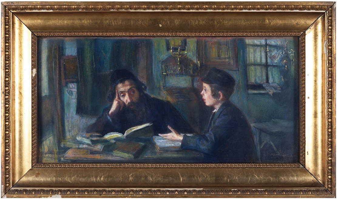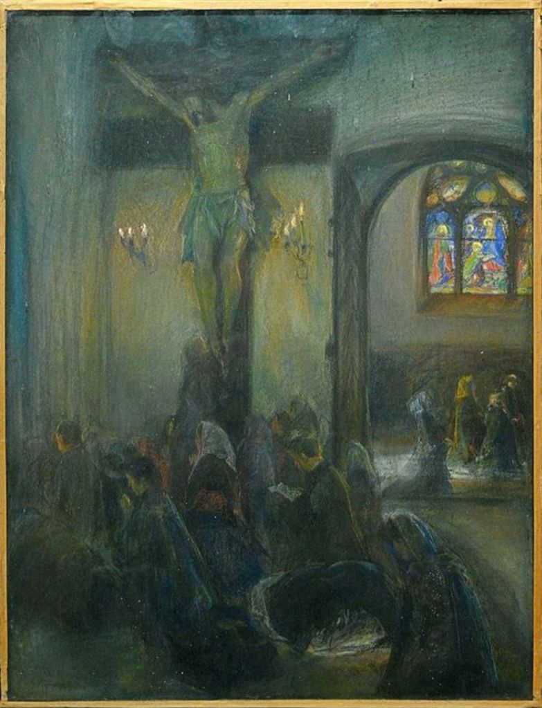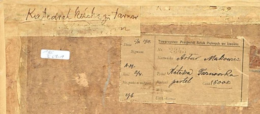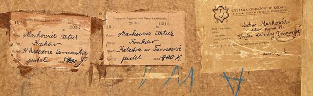 Bardzo dobry pastel Artura Markowicza i to odbiegający od jego przeważającej, typowej, zadumanej tematyki żydowskiej. Obraz przedstawiający modlących się w katedrze tarnowskiej był wielokrotnie wystawiany o czym świadczy kilka nalepek wystawowych. Było też wówczas kilka prób chyba nieudanej sprzedaży tej pracy. Warto było obecnie kupić ten obraz.
