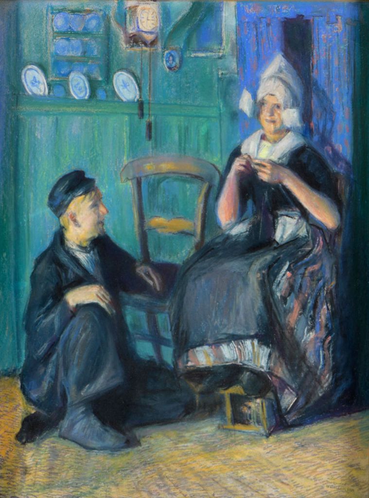 Lot 274. Markowicz, Artur. 1872 Podgórze-1934 Kraków. Praying Christians in the cathedral of Tarnow (Tarnów). Circa 1909. Pastel, signed lower left, various old labels from exhibition participations with inscriptions in Polish on the back of the frame. Frame and glass glued. 65 x 50 cm. Slide-in frame 68 x 50 cm. The Polish genre painter and graphic artist of Jewish descent studied at the Academy of Fine Arts in Krakow from 1886 to 1895 under Leopold Löffler, Wladyslaw Luszczkiewicz, Florian Cynk and Jan Matejko. He then continued his studies at the Royal Academy of Arts in Munich in the class of Otto Seitz. From 1900 to 1903, he lived in Paris and perfected his talent at the École des Beaux-Arts under the direction of Jean-Léon Gérôme. During this time, Markowicz was represented with works at the Salon des Artistes Français and the Salon d’Automne, among others. The focus of his work is the life of the Jewish ethnic group in small Polish towns. For the painting on offer, the painter chose a Christian place of worship – the cathedral in Tarnow near Krakow – as his motif. In a twilight atmosphere, a group of praying people gather under a monumental crucifix. Interiour scene in the cathedral of Tarnow (near Krakow) in Poland. Ca. 1909. Pastel painting, signed lower left, old labels at frame back. Framed with glass. 68 x 50 cm. No estimate. Kunstauktionshaus Günther. 09/24/24. Sold 1,600 euro