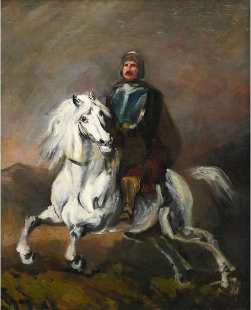 Lot 46. Piotr Michalowski 1800 – 1855 POLISH. A VALIANT KNIGHT; oil on canvas, 70.5 by 58cm., 28 by 23in. Provenance: Private collection, Poland (acquired from the artist; thence by descent to the present owner). Exhibited: Cracow, National Gallery, Piotr Michałowski. 1800 – 1855, 2000. Estimate 40,000-60,000 GBP. Sothebys. 12/16/15 (niesprzedany)