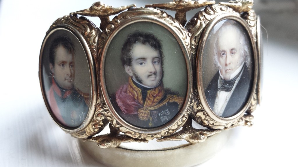 Szanowny Panie, (…). Załączam kilka zdjęć złotej bransoletki (14k, bez puncy), którą zakupiłem w domu aukcyjnym Bukowskis w 1983 roku. Bransoletka zawiera miniatury — maleńkie, o wysokości zaledwie 21 mm — dlatego malarz skupił się przede wszystkim na twarzach; stroje (mundury) zostały oddane dość schematycznie.