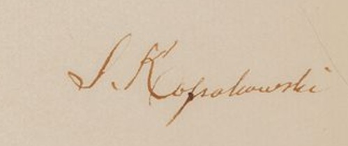 Wyjaśnienie sygnowania tego portretu nie pozwala na udzielenie jednoznacznej odpowiedzi. Można je odczytać jako Kolakowski , Kołakowski czy też wobec słabo widocznego drugiego k jako Kolanowski czy też Kołanowski.