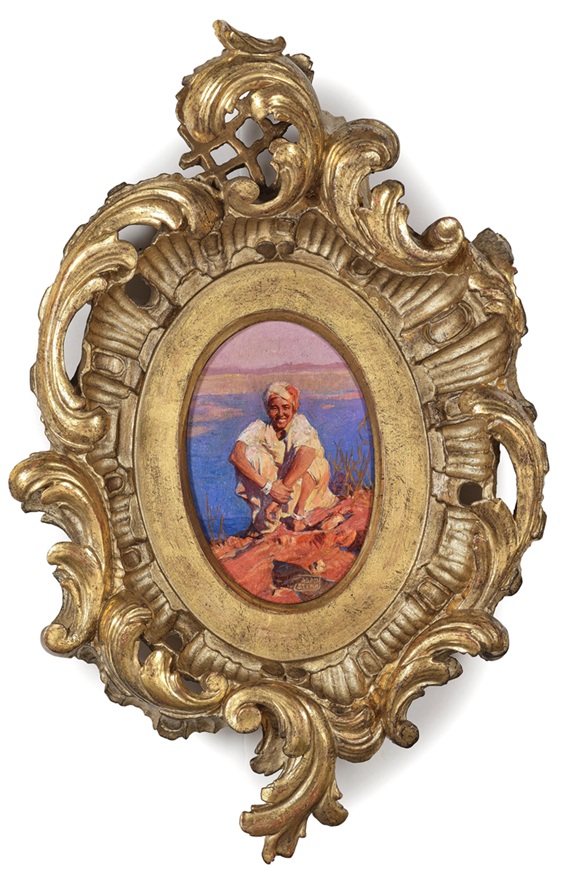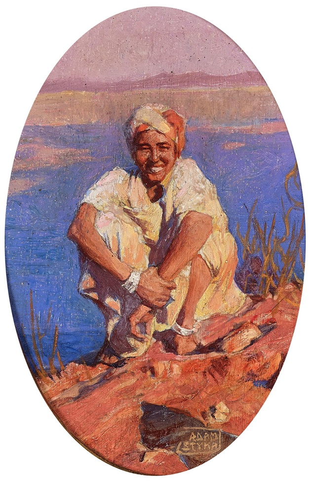 Loy 102. Adam Styka (Kielce 1890-1959 Doylestown, Pennsylvania). Fellache am Flussufer, signiert Adam Styka, Öl auf Karton, 13,5 x 9 cm. Estimate €800 – 1,200. Dorotheum. 09/17/25. Sold €2,800