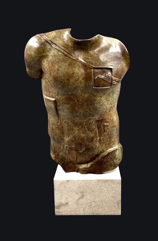 Lot 451. Igor MITORAJ (1944/2014) after. Male torso. Large brown patina bronze, signed and numbered. Travertine base. Height : 38 cm (48 cm with base). Estimate €2,500 – 3,000. Martin et Associés. 09/07/25