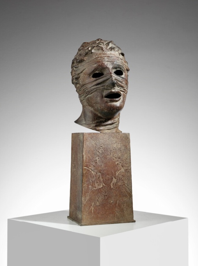 Lot 536. Igor Mitoraj (1944-2014). Grande Notturno, signed and numbered ‘Mitoraj 1⁄8’ (below on a side), bronze with dark patina, 50 ¾ x 50 ¾ x 50 ¾ in. Executed in 2008, this work in number one from an edition of eight. Provenance: Contini Galleria d’Arte, Venise, Acquis auprès de celle-ci par le propriétaire actuel. Exhibited: Venise, Contini Galleria d’Arte, Igor Mitoraj, septembre 2008-avril 2009, p. 212 (illustré en couleurs au catalogue d’exposition pp. 74-81). L’authenticité de cette œuvre a été confirmée par le Studio Igor Mitoraj, Pietrasanta. Cette œuvre est accompagnée d’un certificat d’authenticité du Studio Igor Mitoraj, Pietrasanta, daté du 14 septembre 2012. Estimate €80,000 – 120,000. Christie’s. 04/11/25. Sold €70,000