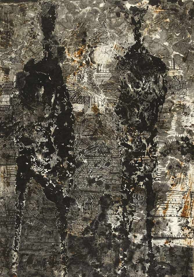 Lot 989. HENRYK MUSIALOWICZ (1914 Gniezno – 2015 Warschau). Federzeichnung auf Papier (auf Pappe montiert), ‘‘Paysage” (1967), unten rechts signiert ”HMusialowicz” und datiert, verso handschriftlich (wohl vom Kuenstler) mit Adresse versehen und betitelt, ca. 48,5×67,5xcm, ungerahmt (auf Platte montiert), berieben, Ecke oben links mit Knickspur. Starting 450 euro. Rotherbaum. 12/12/20. (20140019)