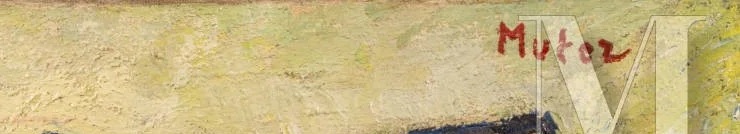 Lot 39. Mela MUTER (Warsaw 1876 – Paris 1967). People from the artist’s studio in Avignon. Oil on canvas 100 x 73 cm. Signed upper left “Muter”. On the back of the canvas, label of Galerie Bargera and Galerie Gmurzynska. Provenance : Galerie Gmurzynska Galerie Bargera, Cologne, Germany Ewa and Wojtek Fibak Collection. Acquired from them by the current owner in the 1990s (Swiss private collection). This painting shows the same model as “Solitude”, from the Ewa and Wojtek Fibak collection, no. 19, and reproduced on p.12 of the catalog for the exhibition Mela Muter, Musée de Pont-Aven, October 2, 1993-January 2, 1994, Pont Aven. The painting appears to have been executed from his studio on the Rocher des Doms. The bird’s-eye view encompasses the group of people, the Rhône and Fort Saint-André in the distance on the other side of the river at Villeneuve-lès-Avignon. Estimate €50,000 – 60,000. Sold €62,000