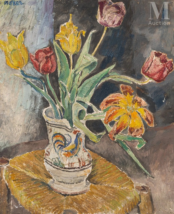 Lot 41. Mela MUTER (Warsaw 1876 – Paris 1967). Pot of tulips. Oil on panel 61 x 50 cm. Signed upper left “Muter”. On the back of the frame, the label “n°2231 Pot de tulipes. Provenance: Ewa and Wojtek Fibak Collection. Acquired from them by the current owner in the 1990s (Swiss private collection). Estimate €15,000 – 20,000. Sold €25,000