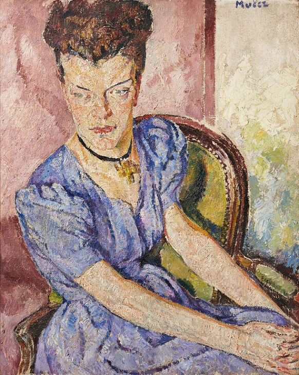 Mela Muter, the magnificent chronicler of the Paris-based elite of France’s cultural scene, captured her portraits’ sitters – in this case, the wife of the well-known author André Salmon – with a precise sense for their desolate financial situations and their corresponding emotional states.