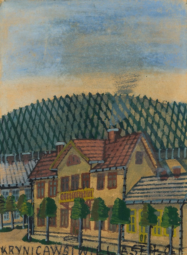 Lot 167. NIKIFOR (1895-1968), “Willa Romanówka in Krynica“, gouache/paper, inscribed lower center, approx. 20 x 22, framed behind glass, 36 x 42 cm, Provenance: Private collection NRW. Estimate €950 – 2,500. Auktionshaus Bischoff. 09/12/25