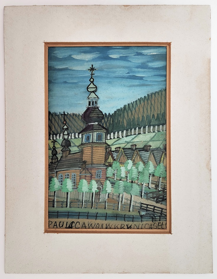 Lot 178. Nikifor KRYNICKI (1895-1966). View of a village. Watercolor and gouache. Annotated at the foot: BOBOWIEWSISTARYMIASTO. Two stamps on the back (“Pamiatka z Krynicy / Nikifor artysta malarz” and “Nikifor artysta / Krynica wies”). 21.3 x 14.6 cm. We would like to thank Mr. Bogdan Karski, a great enthusiast of Nikifor’s work, for confirming the work’s authenticity. Estimate €300 – 500. Ader. 09/30/25. Sold €800