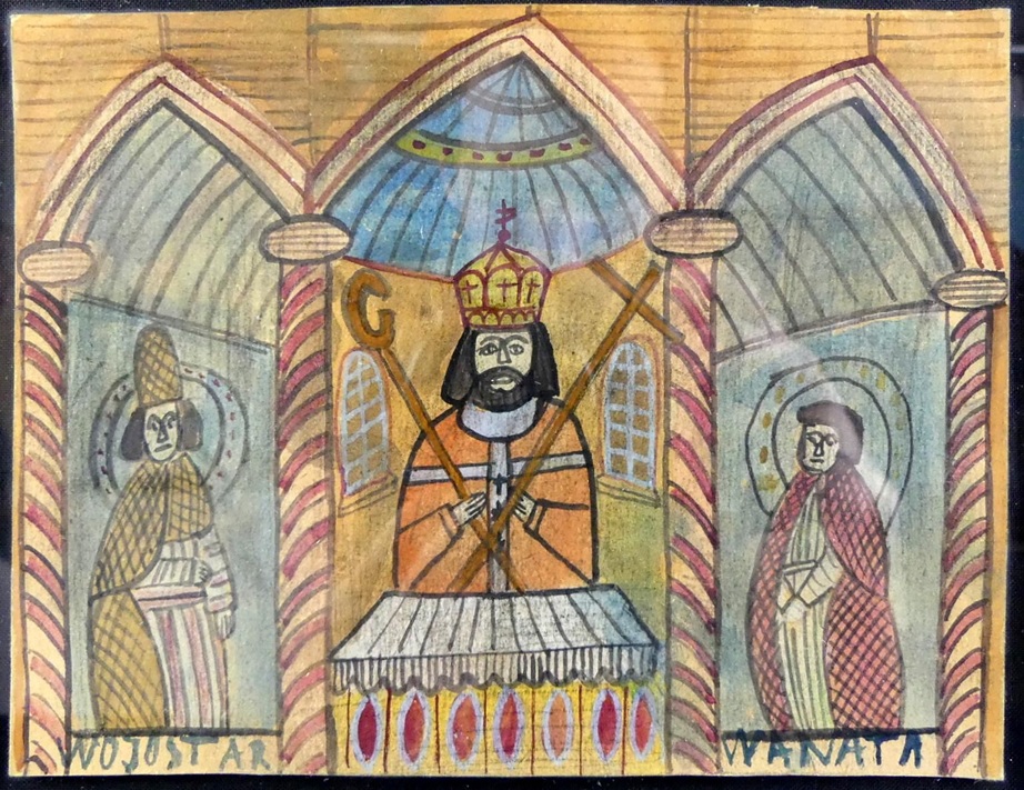 Lot 143. NIKIFOR (1895-1968), “Icon“, gouache/cardboard, inscr, 14.5 x 12.5, framed behind glass and passepartout, 38 x 32.5 cm, Provenance: Private collection NRW. Estimate €330 – 1,200. Auktionshaus Bischoff. 09/12/25