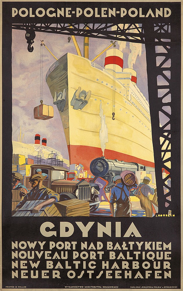 Stefan Norblin (1892-1952) studied in Antwerp and Dresden, perfecting his Art Deco style, and during the interwar years worked extensively in his native Warsaw as a painter, portraitist, interior designer and illustrator. He was commissioned by the Polish State Railways to create a series of posters promoting tourism, including the one presented here featuring the city of Vilnius. The artist left Poland in 1939 to paint the royal family of Iraq, and then moved to India to design the interior of the Maharaja’s palace. Not wanting to return to a post-WWII Communist ruled Poland, Norblin and his wife (European movie star Lena Zelichowska) went into exile in San Francisco. There, he enjoyed success as a portrait artist for the likes of Amadeo Giannini, founder of Bank of America, and General Douglas MacArthur. In 1952, Norblin was struck with glaucoma and committed suicide. Much of his work went largely forgotten until the 1990s, when a German art historian “discovered” Norblin’s work in Indian. A new appreciation for the artist’s talent has emerged, making this beautiful poster a wonderful find. As a historical side note, the city promoted on the poster, Vilnius (Wilno), is now the capital of Lithuania, but was occupied by Poland at various times in the early 20th century. Touchup has been applied to a top left corner chip and a small nick in the top right corner, the only minor handling that keeps the poster from a higher grade. Fine/Very Fine on Linen.