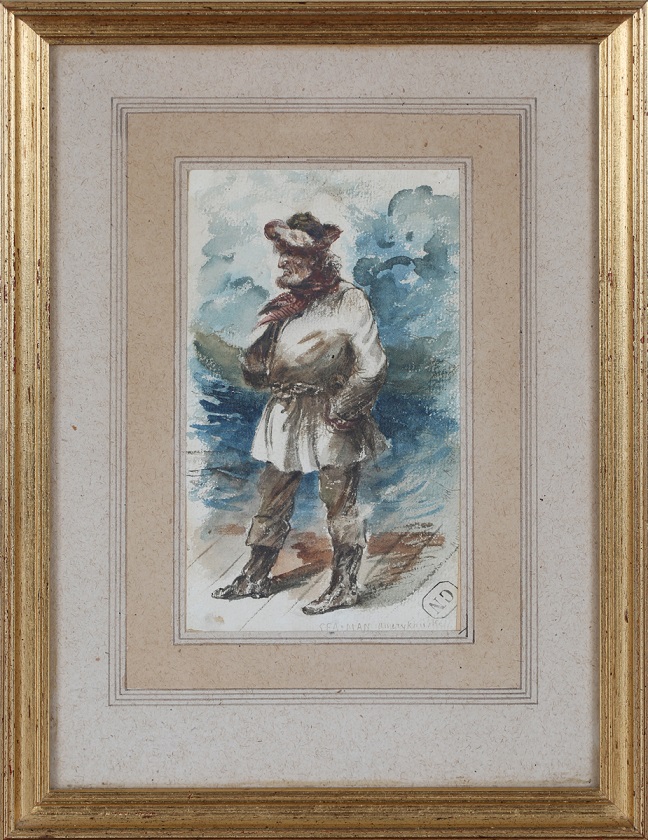 Lot 51. Cyprian Kamil Norwid – ‘Sea-ManAmerykański’ (American Sailor), 19th century watercolour, titled and stamped ‘C.N.’, 18cm x 10cm, within a gilt frame. Provenance: Konstancji Górskiej (Konstancja Górska) a friend of the artist, thence by descent to her niece Ludwika, and Ludwika’s son Stanisław; in the collection of the Karnkowski family of Łazy by 1940; acquired by the current vendors grandfather from a Polish émigré. References: Dr Edyta Chlebowska ‘Z Norwidowskiego Archiwum Zenona Przesmyckiego (2): Opisy Rysunków Norwida Z Albumu Konstancji Górskiej’ published in ‘Studia Norwidiana’ 29:2011. With thanks to Dr Edyta Chlebowska for his assistance in cataloguing this lot. Estimate 3,000 – 5,000 GBP. Toovey’s. 05/11/22