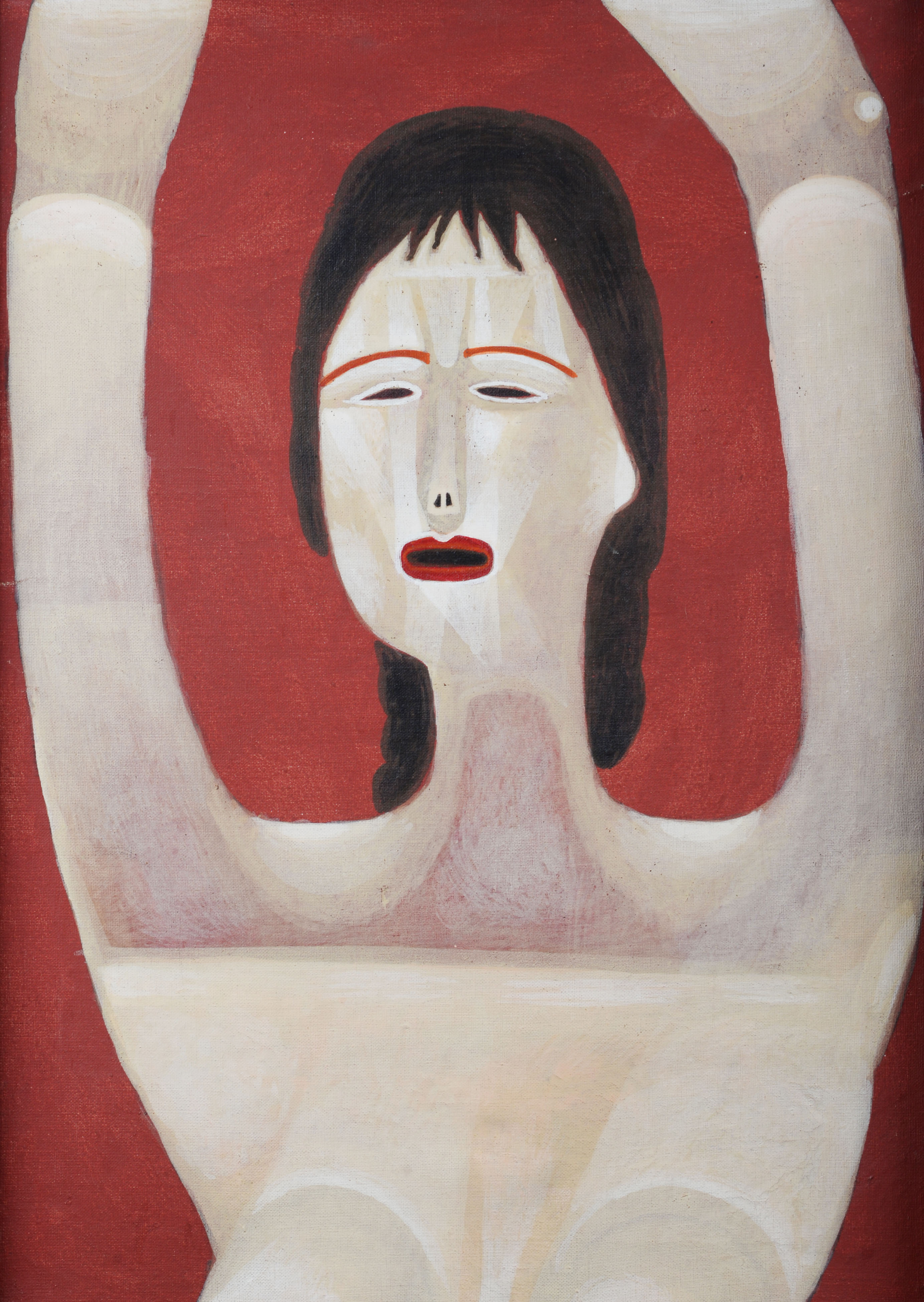 Lot 211. Jerzy Nowosielski (Krakow, Poland 1923–2011). Nude, 1989/1990, signed and backdated 1976 on the reverse, oil on canvas, 90 x 80 cm, framed. We are grateful to Andrzej Szczepaniak, curator, art historian, researcher and expert of the artist, for the information he kindly provided on this work. Provenance:Private Collection since the 1990s. Estimate €40,000 – 60,000. Dorotheum. 11/19/25. Sold €55,000 (€71,500 bp)