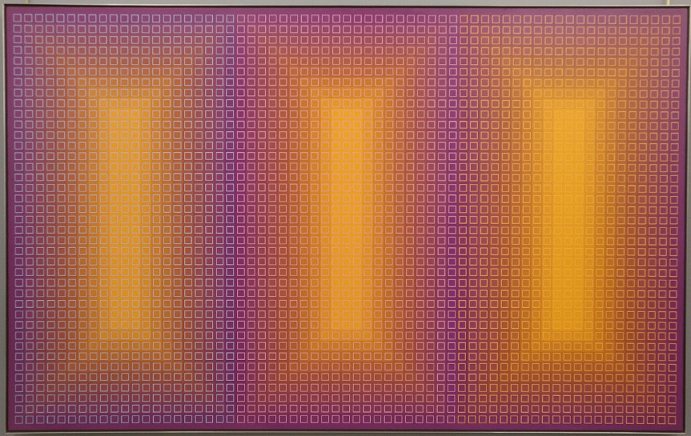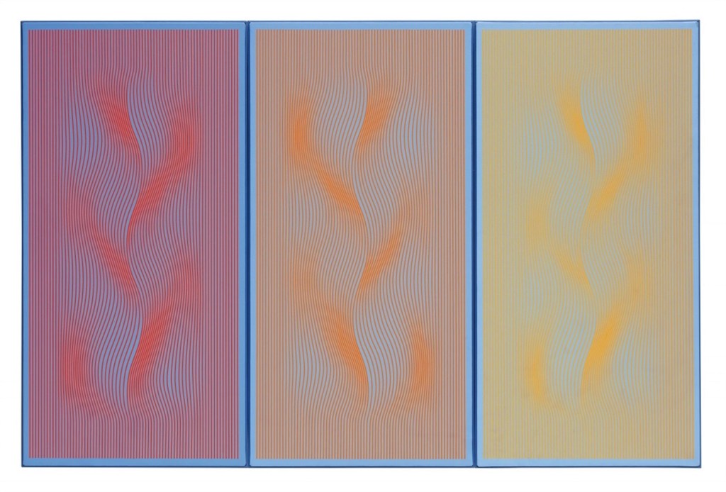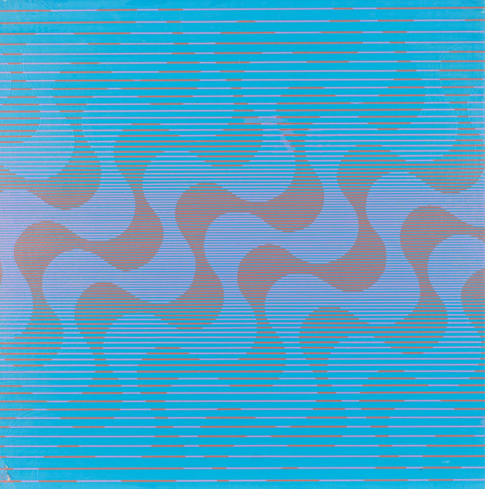 Julian Stańczak. Dynamische Anordnung in blau und orange, 1969