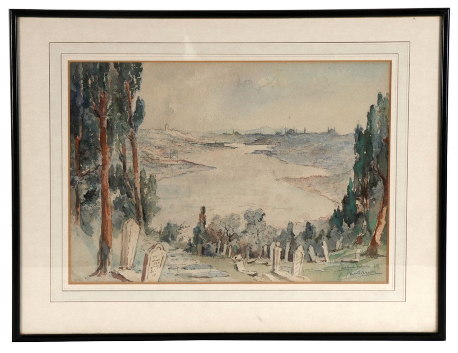Lot 751. Jozef Pavlekevich (Polish 19th / 20th century) – View of Istanbul from the Hill of Eyup – signed lower right, watercolour, framed & glazed, 40 by 28cms (15.75 by 11ins). Estimate 40 – 60 euro. Clarke’s Auctions at Semley. 12/28/19