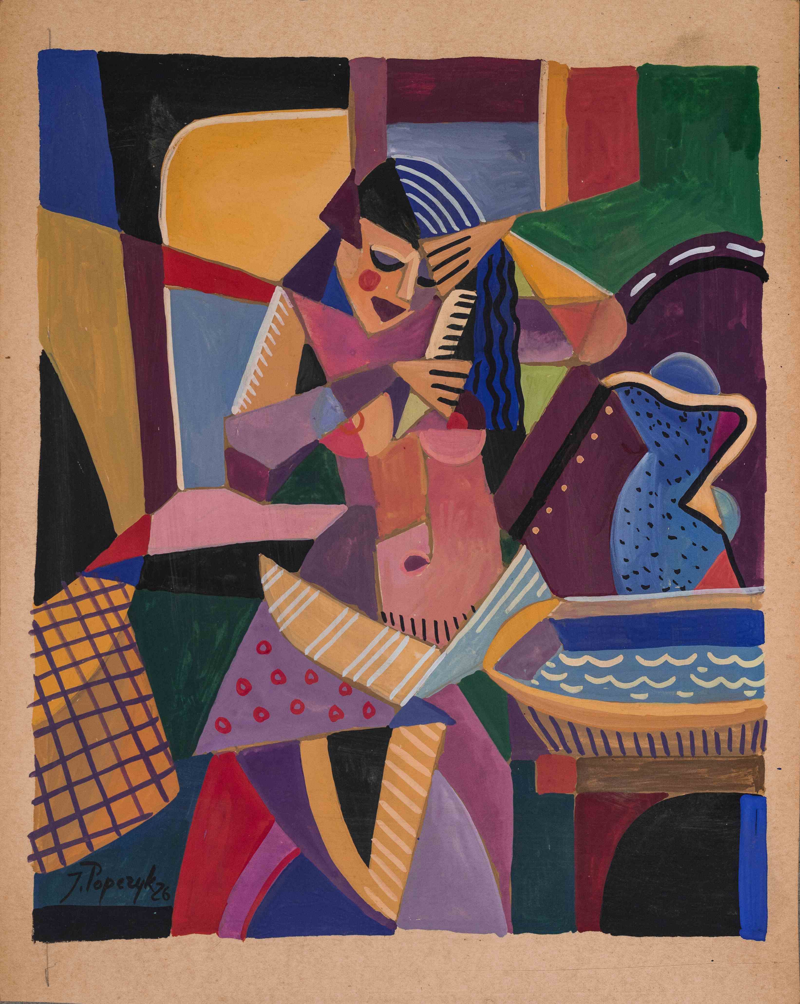 Lot 258. JOZEF POPCZYK (1890-1971). Four models. Oil on canvas Signed lower right Contresigned and titled “cztory modelki” on the back 61 x 50 cm. Estimate 800 – 1,200 euro. Osenat. 10/31/20