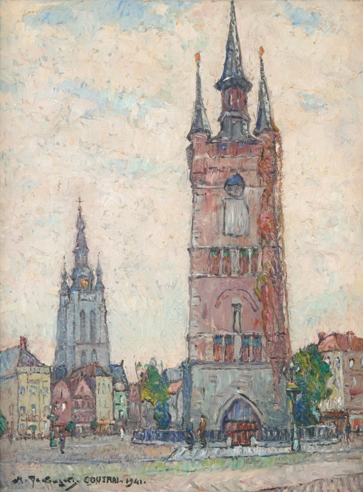 Lot 339. Mecislas RAKOWSKI École polonaise (1882-1947). Oil on panel: “Courtrai“. Signed and dated: M. Rakowski 1941. Size: 34.5 x 27 cm. Estimate 400 – 600. Horta. 04/23/24. Sold 400 euro