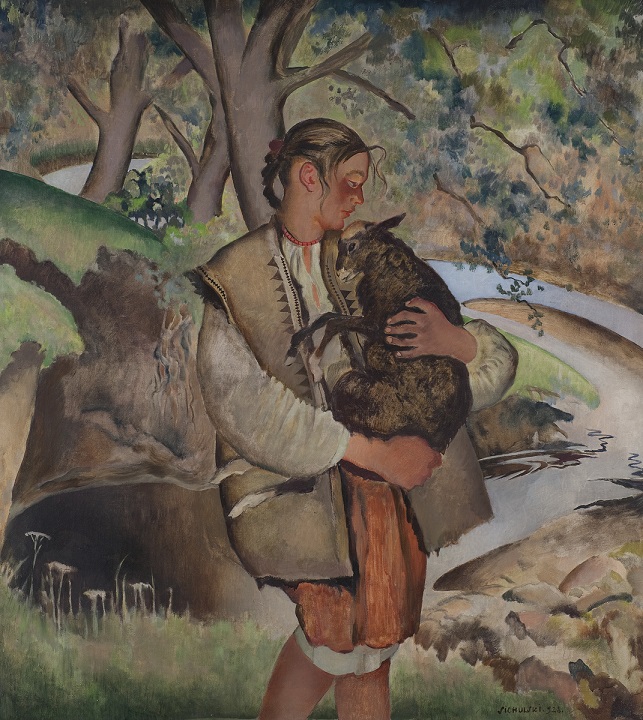 Obraz Kazimerza Sichulskiego z ok 1928 roku zostal zakupiony w 1968 roku przez Muzeum Sztuki w Łodzi. Wymiary pracy: 100,5 x 110.5 cm.