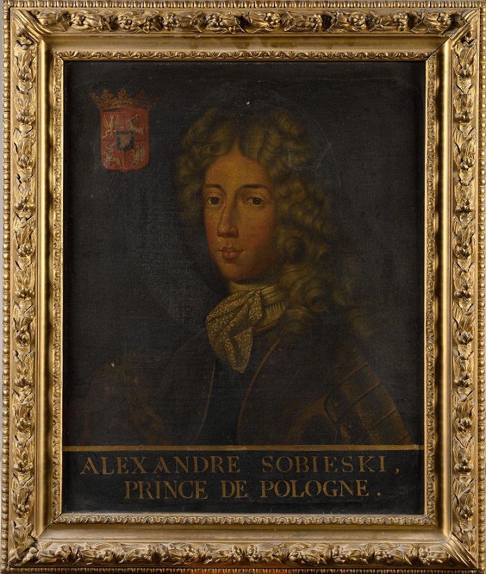 Painted around 1720, our painting could be considered a posthumous portrait of the prince (probably painted after his death in 1726). So our painting cannot be the one exhibited in 1704, as has been suggested in the past. Constantin Sobieski was the third son of John III Sobieski, King of the Polish-Lithuanian Union from 1674 to 1696 and a national hero for his victory over the Turks. King Jean III Sobieski married Marie Casimire Louise de La Grange d’Arquen on July 5, 1665, and received the Order of the Holy Spirit in Poland on November 30, 1676. Marie-Casimire and Jean III are buried in Krakow’s Wawel Castle. Constantin Sobieski receives the Order of the Holy Spirit in Rome in the Church of Saint Louis on December 19, 1700. One of his portraits, formerly attributed to Hyacinthe Rigaud, is preserved in the Palace Museum of King Jan III in Wilanow.