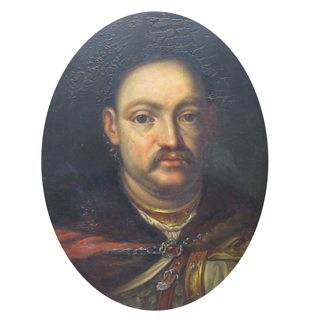 Lot 412. Polish School (18th Century) “Portrait of Jan III Sobieski, King of Poland and Grand Duke of Lithuania”, oil on canvas, inscribed in Latin “Joannes Sobieski/Rex Polonia”, 32″ x 24″. Presented in an attractive antique gessoed and giltwood frame. New Orleans Auction Gallery. 3/21/15. Estimate $800-1,200.