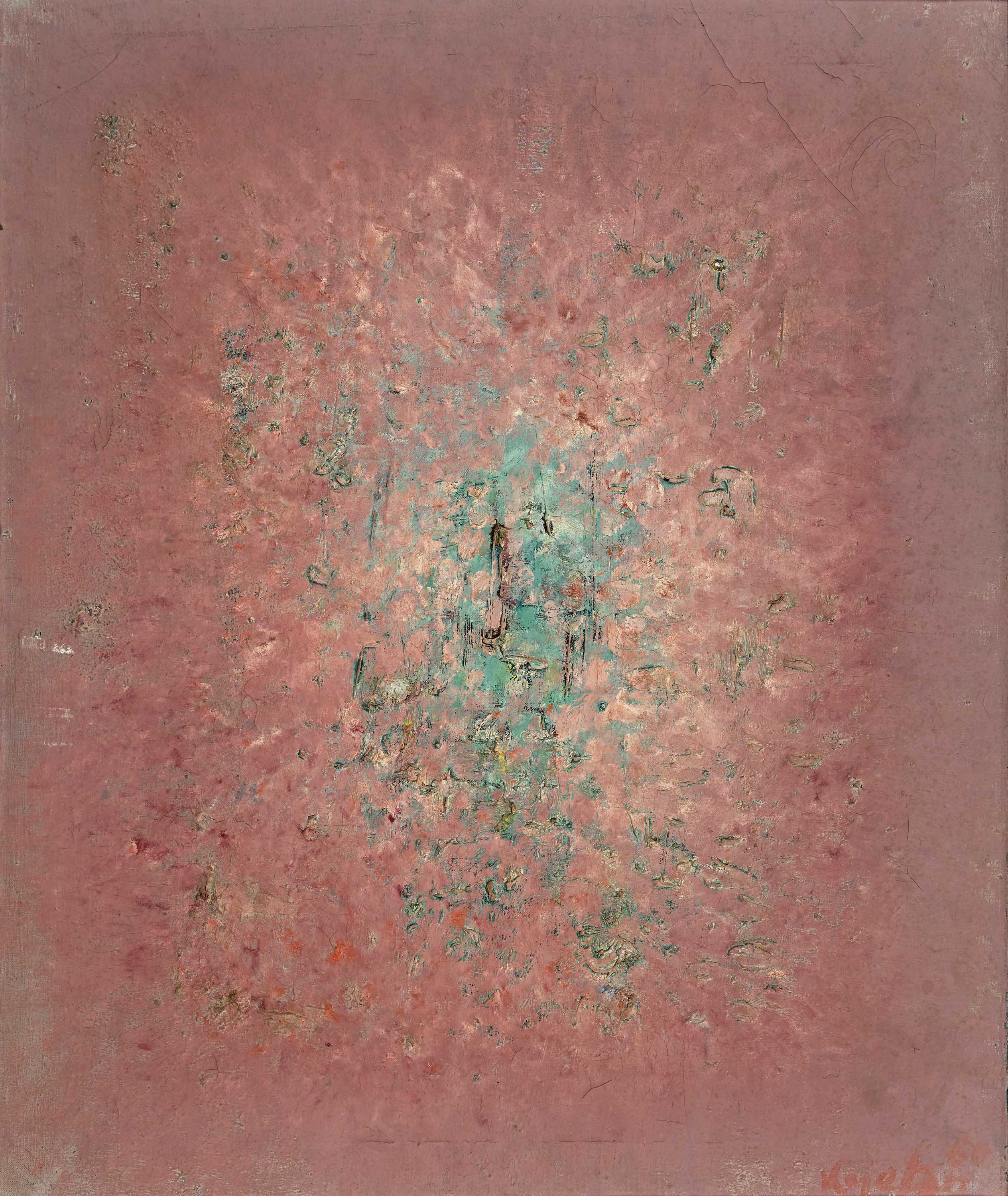 Kajetan Sosnowskis künstlerischer Werdegang begann mit einer Ausbildung unter Tadeusz Pruszkowski und Wojciech Jastrzebiowski an der Akademie der Schönen Künste in Warschau. Unmittelbar nach dem Zweiten Weltkrieg gründete er kunstpädagogische Bildungsstätten an seinem Wohnort Siedlce sowie in Lodz. 1947-1951 übernahm er die künstlerische Leitung des Wochenblatts Kuznica und zog anlässlich der Redaktionsverlegung im Jahr 1949 nach Warschau, wo er den intensiven Austausch mit der Künstler- und Intellektuellenszene suchte. Zusammen mit den Malern Marian Bogusz und Zbigniew Dlubak gründete er 1955 die “Grupa 55”, in deren Rahmen er regelmässig ausstellte. Während Sosnowskis Frühwerk noch vom Postimpressionismus geprägt war, entwickelte der Künstler Mitte der 1950er Jahre einen dekorativ-metaphorischen Stil und arbeitete ab Ende des Jahrzehntes abstrakt. Fortan bestimmten gegenstandslose Zyklen sein Oeuvre, in denen Licht, Chemie und Ökologie thematisch eine zentrale Rolle einnahmen.