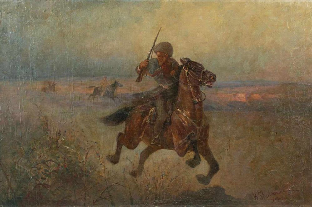 Szczerze pisząc, najbardziej w tym wielkim obrazie Władysława Stachowskiego podoba mi się jego czytelna sygnatura. Reszta jest zupelnie do kitu. Koń uciekającego Czerkiesa zawieszony jest w powietrzu, tylnie nogi konia namalowane są bardzo nieporadnie, koń w oddali wygląda jakby został wystrugany z drzewa, krajobraz jest bardzo ubogi. Obraz jest trochę zniszczony (np. widoczne pęknięcie farby u dołu sugnatury), żółty werniks koniecznie trzeba usunąć by poznać rzeczywisty koloryt tej pracy a to są hektary płótna do oczyszczenia(!), brak ramy. Zawiesić obrazu na ścianie w takim stanie się nie da a wyłożyć trzeba na jego konserwację i ramę spore pieniądze. W dodatku, podciąganie nazwiska autora pod szyld szkoły monachijskiej (ze względu na zaprezentowaną tematykę) byłoby sporym nadużyciem.