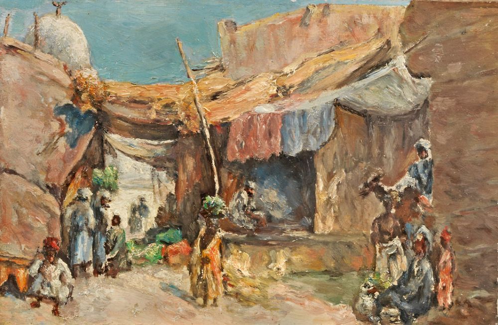 Lot 1315. Wladyslaw Stachowski (1852 Kuba/Aserbaidschan – 1932 Warschau). Straßenzene. Öl/Malkarton. Verso undeutl. bez. mit Künstleradresse “Kurfürstenstr. 72″(?). 17,3 cm x 26,5 cm. Indistinctly inscribed on the reverse. Reserve 400 €.