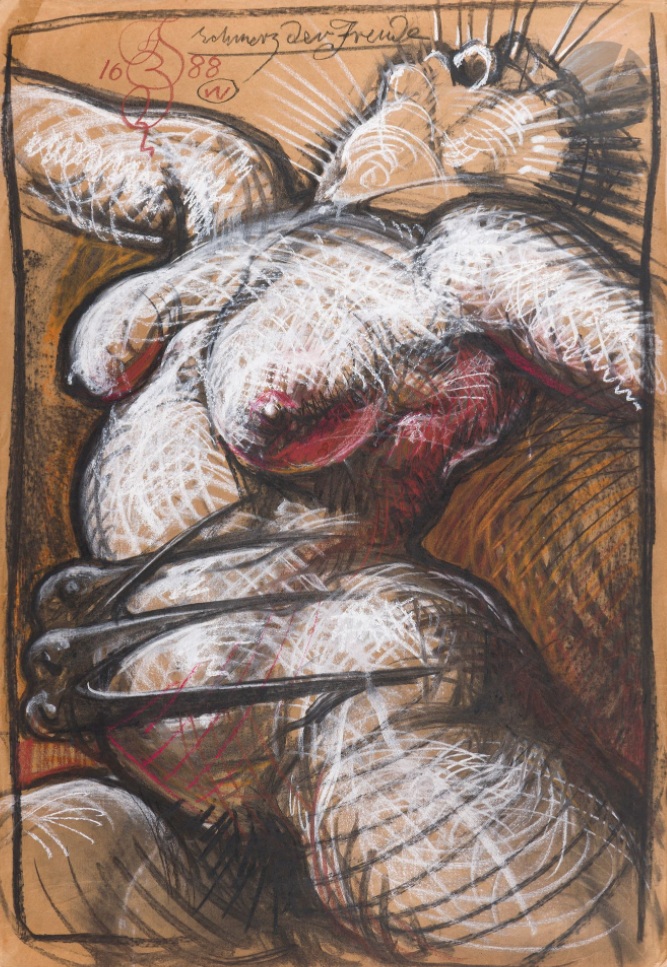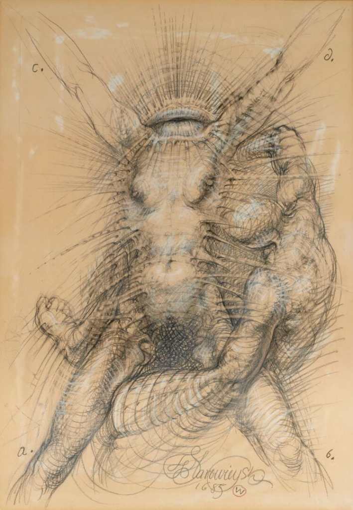 Lot 171. Franciszek STAROWIEYSKI (1930-2009). Schmerz der Freude, 1988. Charcoal and pastel. Signed, titled and backdated 1688 above. 102 x 71 cm. Estimate 3,000 – 4,000 euro. Ader. 03/20/25. Sold 6,000 euro