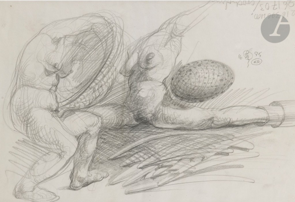 Niesygnowany szkic rysunkowy Franciszka Starowieyskiego, którego autentycznośc gwarantuje Galeria Napiórkowska. Cena wyjściowa €800 jest bardzo wysoka jak na szkic Starowieyskiego. Niedawno francuski Ader sprzedał wiele szkiców tego artysty, może lepszych, może gorszych ale na pewno taniej. Nie należy się rozpędzać.