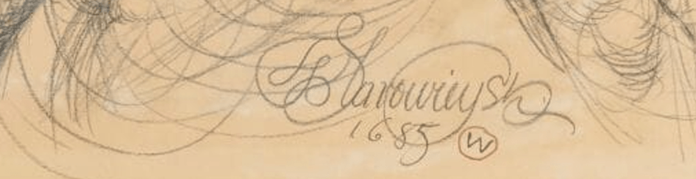 Lot 5. Franciszek STAROWIEYSKI (1930-2009). Untitled, 1987. Charcoal and chalk. Signed, dated 1687 and located W(arszawa) lower right. 63.5 x 48.5 cm Framed. Bibliography : Franciszek Starowieyski (1930-2009) exhibition catalog. Przyjaźnie paryskie 1683-1693. Kolekcja A. i N. Avila, Sopot 2014, p. 141. Provenance: Alin Avila Collection. Estimate €1,500 – 1,800. Ader. 09/30/25. Sold €4.500