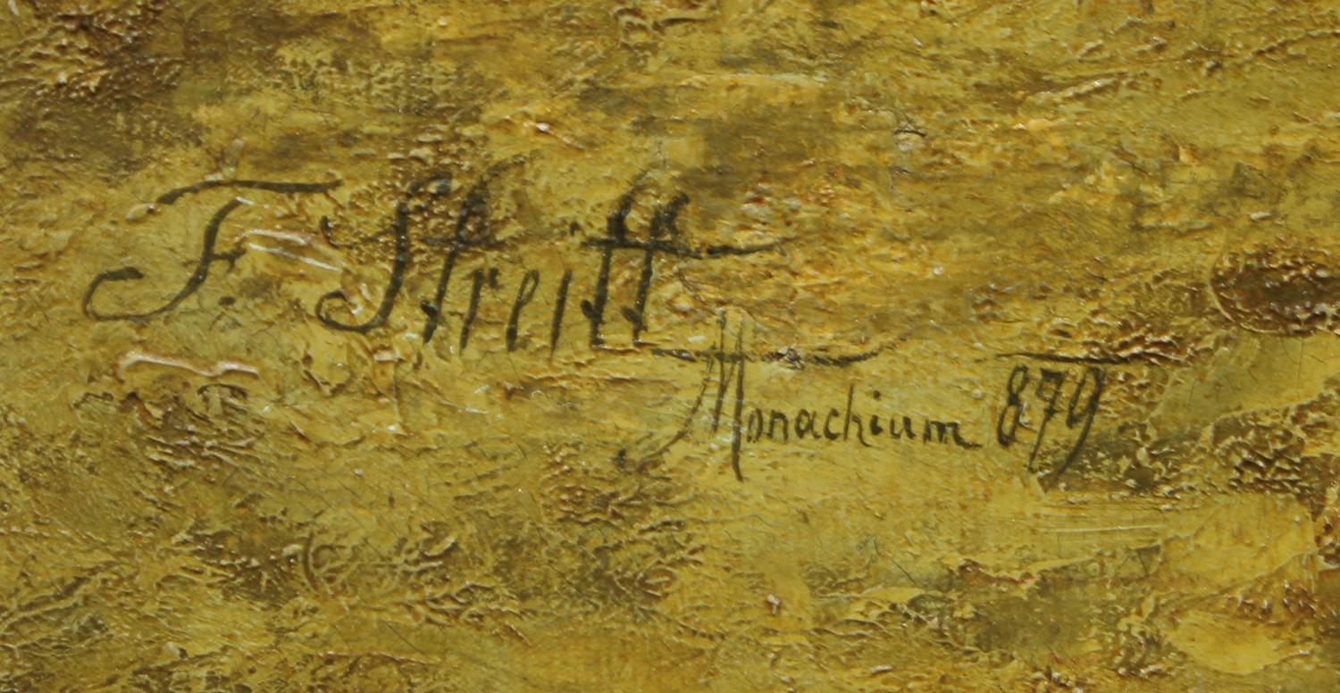 Lot 801. Streitt, Franciszek (1839 Brody – 1890 München, polnischer Maler, Mitglied der Münchner Schule. Von 1871 bis zu seinem Lebensende in München ansässig und künstlerisch tätig.). “Der Weihnachtsabend“, Öl auf Leinwand, F. Streitt München (1)876, verso Stempel des Leinwandherstellers in München, 58 x 90 cm