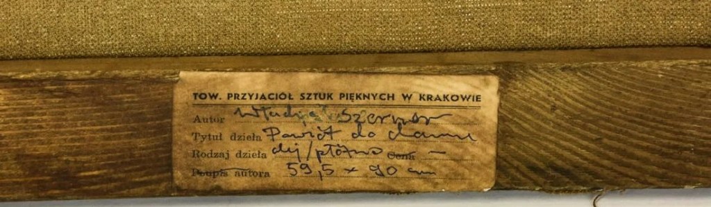 Napisał do mnie czytelnik list w sprawie tego obrazu Władysława Szernera. Otóż obraz ten był własnością Seminarium Polskiego w Orchard Lake w stanie Michigan, USA. Seminarium to od kilku lub kilkunastu lat jest w stanie upadku. Seminarium było właścicielem wielu dzieł polskiej sztuki przekazywanych tam ponad sto lat przez Polonusów. Obecnie, niekt nie wie co się dzieje z tymi zbiorami. Być może zbiory te nie są pilnowane i dochodzi do ich kradzieży. Obraz Władysława Szernera został umieszczony w katalogu wystawy, która odbyła sie w Kanadzie w latach 80-tych XX wieku o tytule “Malarze Polscy (1850 – 1950)”. Na stronie 103 tego katalogu jest fotografia ww pracy Władysława Szernera z opisem własności. Kopia z tej książki jest poniżej. Bardzo możliwe, że obraz w aukcji pochodził z kradzieży z tych zbiorów. Należałoby zwrócić się do odpowiedniej kurii z prośba o wyjaśnienie. Ja, mieszkający od kilkudziesięciu lat w USA, nie słyszałem o likwidacji zbiorów tego Seminarium. Słyszałem natomiast o wielkim bałaganie tam panującym. (01/18/24)