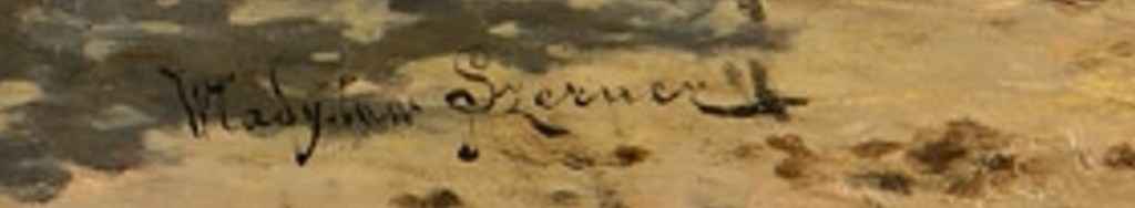 Władysław Karol Szerner wykonywał kopie prac swojego ojca Władysława Szernera. Prawdopodobnie mamy tę sytuację choć nie widziałem oryginalnej pracy Szernera-ojca. Dodaję do tego wpisu sygnaturę z tego obrazu z literkami ‘iun.’ (junior) bo za kilka lat znikną te trzy literki z kropką i praca będzie już uchodziła za ręki Władysława Szernera – monachijczyka ze ‘sztabu’ Józefa Brandta. Zastanawaim się, kto kupi tę pracę i co z nią zrobi. Podejrzewam, że w Polsce obraz ten zrobi wspaniałą karierę i nie ma znaczenia w którym domu aukcyjnym lub której galerii. Będzie wyceniony do 80,000 złotych bo tyle teraz tam kosztują kopie obrazów. Skoro na rynku znajdują się klienci bez edukacji to można im sprzedać każdy towar, każdy ezratz monachijski. Pisałem o tym niedawno w przypadku innej pracy Szernera-juniora: https://polishartcorner.com/2022/02/01/wladyslaw-szerner-czy-wladyslaw-karol-szerner-tym-razem-o-warszawskim-rempexie/.