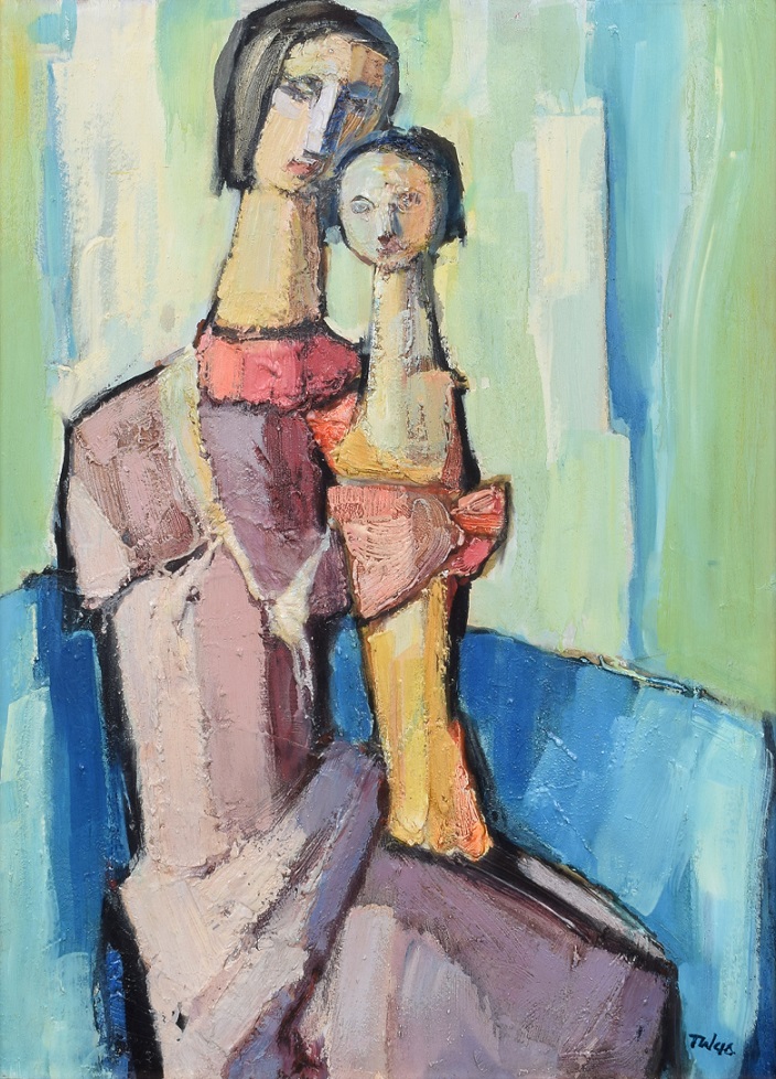 Lot 178. TADEUSZ WAS (Polish, 1912-2005); oil on board, ‘Mother and Child‘, signed lower right, 42 x 50cm, framed. Estimate GBP 100 – 150. Adam Partridge Auctioneers. 09/13/25. Sold GBP 80