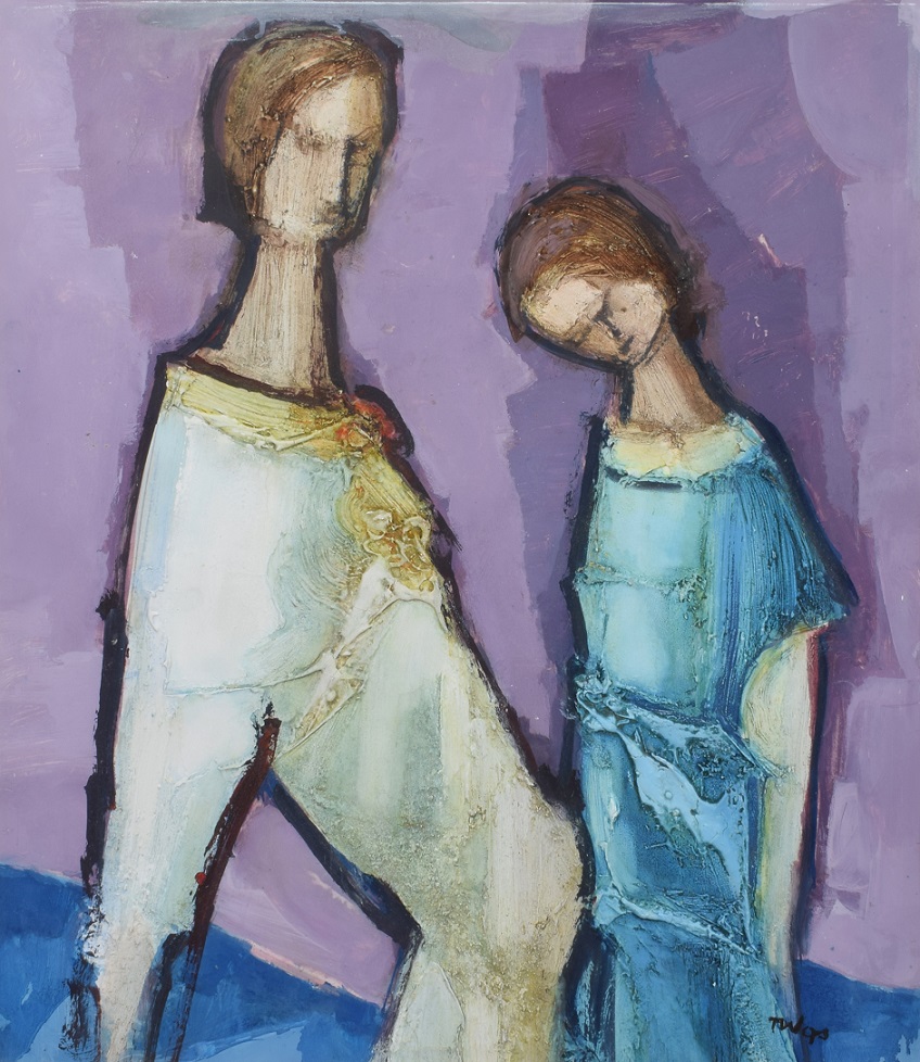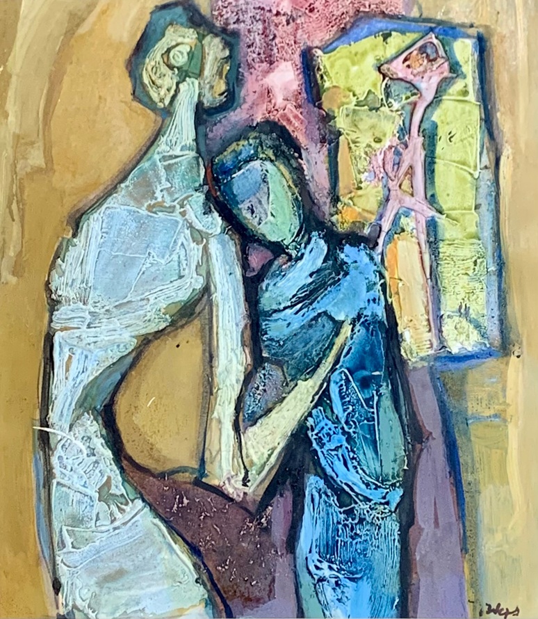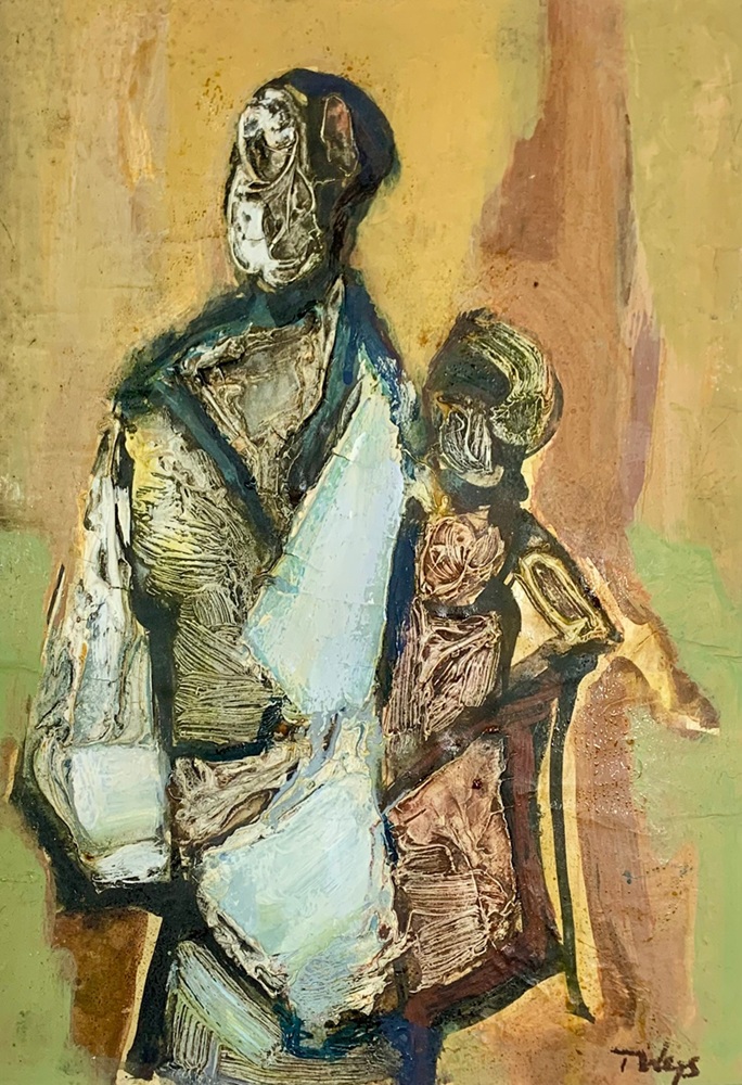 Lot 634. Tadeusz Was (Polish, 1912-2005), Mother and child, Abstract mixed media, Signed to lower right, Unframed, 28cm x 20cm. Griffin’s Auctioneers. 09/09/25. Sold GBP 80