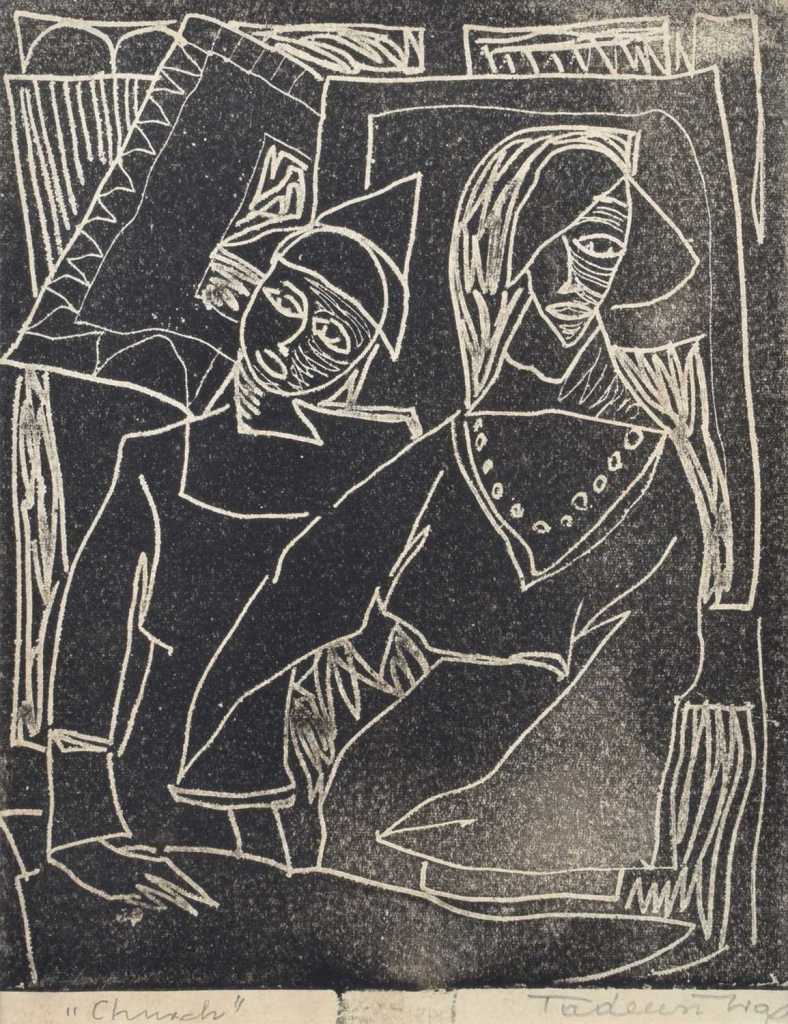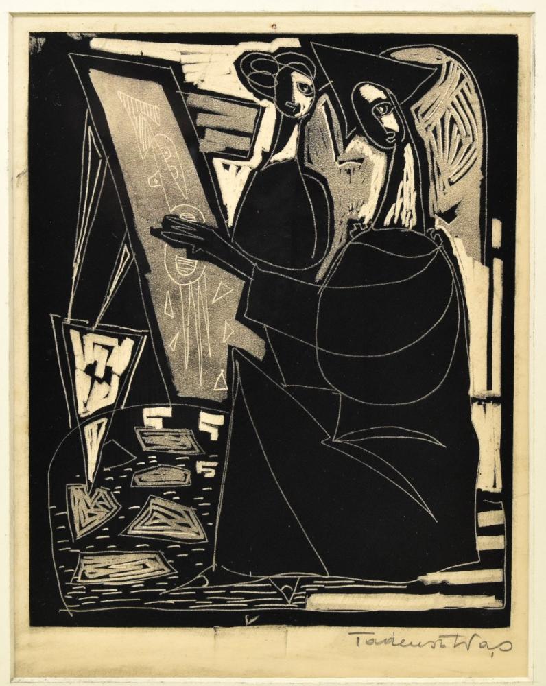 Lot 631. Tadeusz Was (Polish, 1912-2005), Abstract figures, Mixed media, Signed to lower right, Unframed, 37cm x 32cm. Griffin’s Auctioneers. 09/09/25. Sold GBP 70