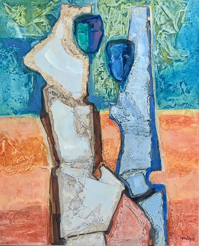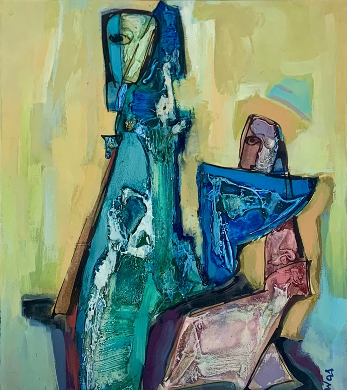 Lot 630. Tade usz Was (Polish, 1912-2005), Abstract figures, Mixed media, Signed to lower right, Unframed, 38cm x 33cm. Griffin’s Auctioneers. 09/09/25. Sold GBP 85