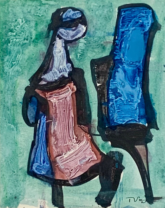 Lot 632. Tadeusz Was (Polish, 1912-2005), Abstract figures, Mixed media, Signed to lower right, Unframed, 26cm x 21cm. Griffin’s Auctioneers. 09/09/25. Sold GBP 70