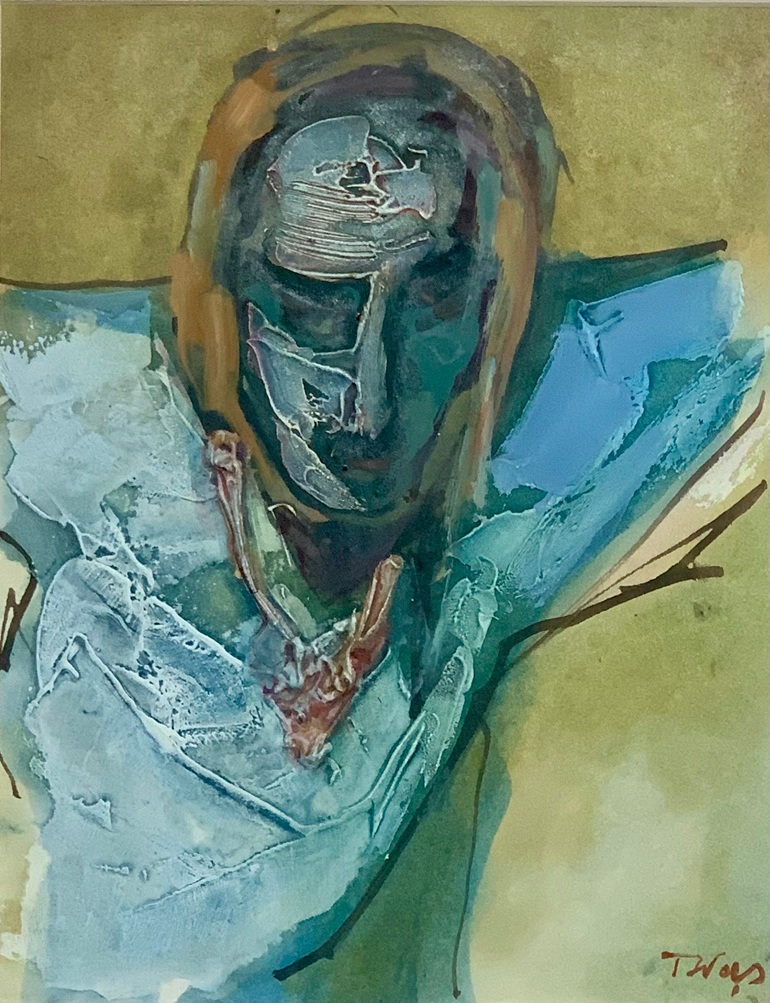 Lot 633. Tadeusz Was (Polish, 1912-2005), Abstract portrait, Mixed media, Signed to lower right, Unframed, 31cm x 25cm. Griffin’s Auctioneers. 09/09/25. Sold GBP 85