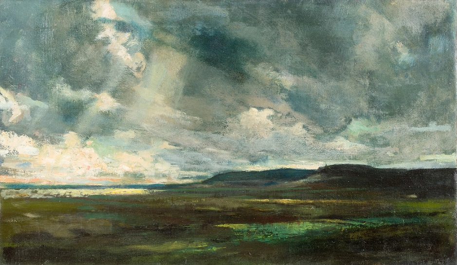 Lot 153. Marian WAWRZENIECKI Varsovie, 1863 – 1943. Paysage en Pologne. Huile sur toile (rentoilée). Vers 1899 – 1900, 39,4 x 71,1 cm. Rentoilée, accidents et restaurations. (Vendu en l’état). Estimation 1 500 – 2 000 €. Aguttes. 02/18/21