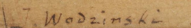Byłbym bardzo nieodpowiedzialny i nieszczery, gdybym rekomendował komuś tę akwarelę z tuszem Józefa Wodzińskiego. Jest tak bardzo odmienna od jego typowych eleganckich salonowych prac (trochę sztucznych), że oczywiste pytanie narzuca się o jej autentyczność. W dodatku, sygnowana jest jako Wodzimski a nie Wodziński – proszę samemu sprawdzić poniżej. 80 euro to też pieniądz.